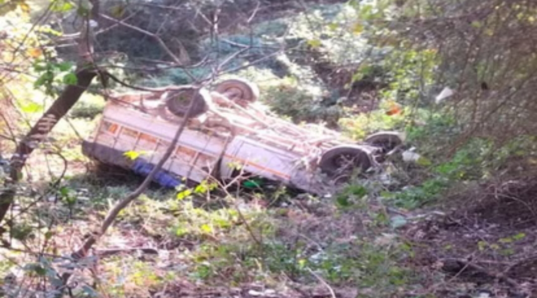 खराब सड़क पर बस को पास देने के दौरान खाई में गिरी पिकअप, पांच घायल…..