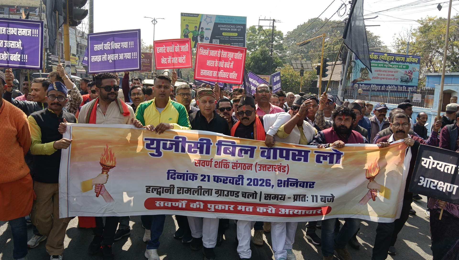 हल्द्वानी। विश्वविद्यालय अनुदान आयोग (UGC) के इक्विटी रेगुलेशन के खिलाफ शनिवार को सवर्ण शक्ति संगठन के बैनर तले रामलीला ग्राउंड से डीएम कार्यालय तक रैली निकाली गई। इस दौरान सवर्ण…