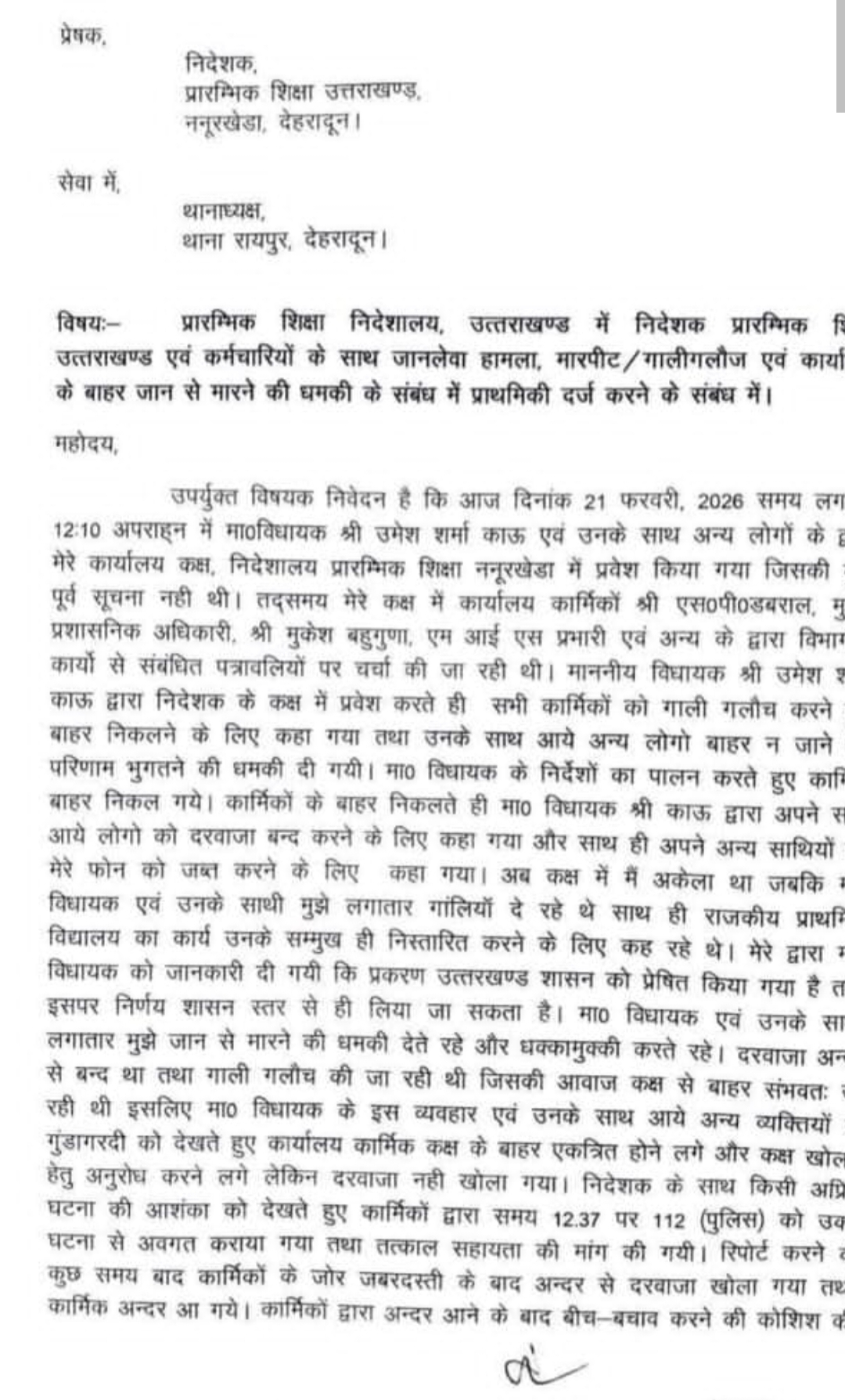 शिक्षा निदेशक पर हुए हमले में, विधायक व उनके समर्थकों पर मुकदमा दर्ज…..