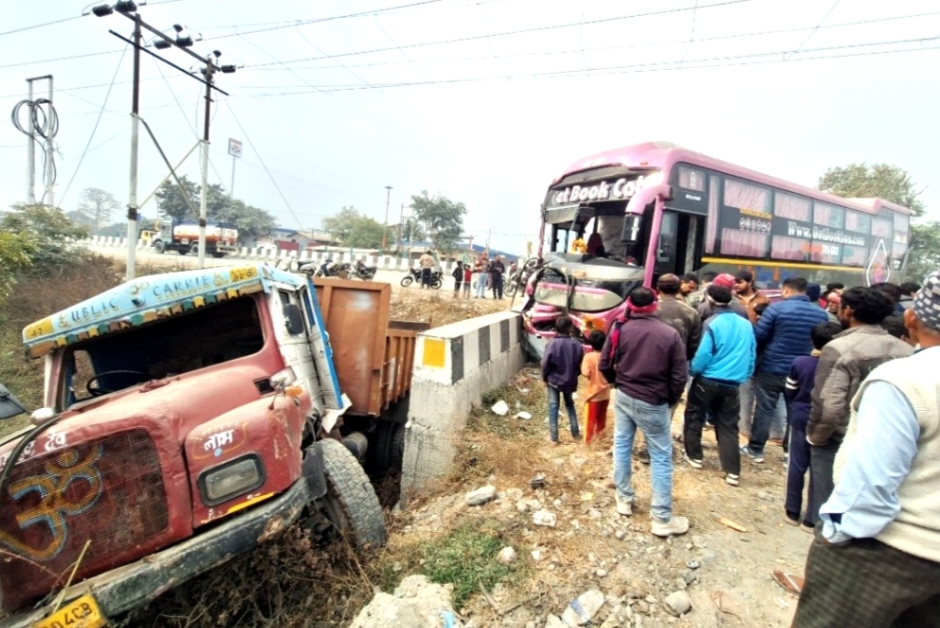 जानकारी के अनुसार पार्किंग से निकल बस दिल्ली की ओर जा रही थी जिसमें दस यात्री सवार थे। इस दौरान आवला चौकी गेट के सामने से गौला में जा रहे डंपर के अचानक मुड़ने से बस और डंपर आमने-सामने टकरा गए। जबरदस्त टक्कर से दोनों वाहन काफी क्षतिग्रस्त हो गए और डंपर नाले में जा गिरा। हादसे से यात्रियों में चीख पुकार मच गई। सूचना मिलते ही पुलिस मौके पर पहुंची और सभी यात्रियों को सुरक्षित निकाला। गनीमत रही की आमने-सामने की टक्कर के बाद भी बस सवार सभी यात्री सुरक्षित हैं।