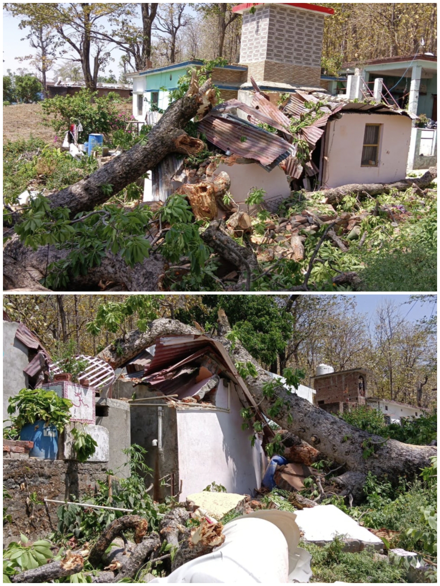 उत्तराखंड हल्द्वानी: दमुवादूंगा में टीन शेड पर गिरा विशाल वृक्ष, तीन घायल।