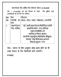 हल्द्वानी: 26 और 27 अप्रैल को शहर के इन इलाकों में बंटेंगे गैस सिलिंडर, देखें रोस्टर…..