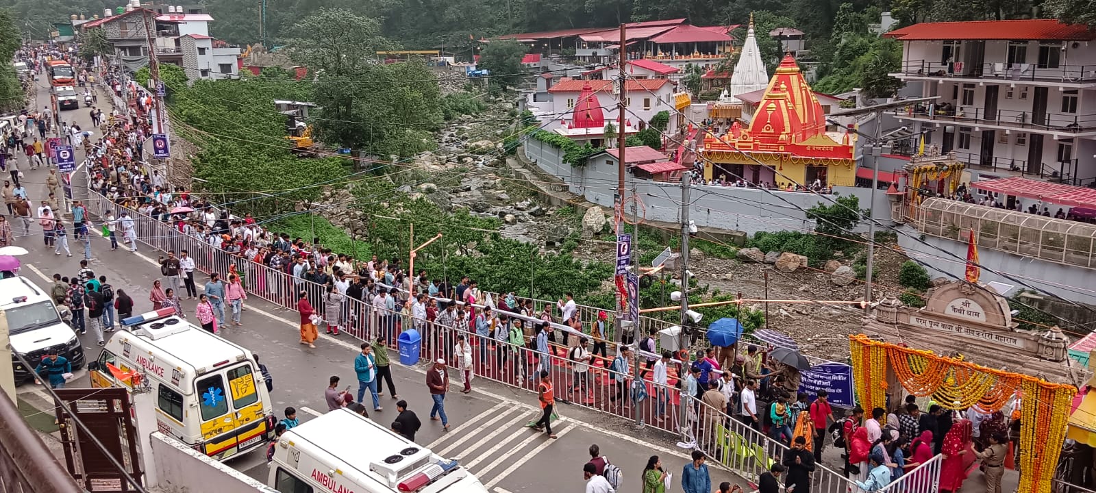 भवाली । कैंची धाम के 61वें स्थापना दिवस पर एक लाख से अधिक श्रद्धालुओं ने कैंची धाम पहुंचकर बाबा नीब करौली महाराज का आशीर्वाद प्राप्त किया। रविवार को प्रातः से ही बाबा के दर्शनों के लिए भक्तों की लंबी कतारें लगनी शुरू हो गई थीं। बाबा को भोग लगाए जाने के बाद सुबह पांच बजे से श्रद्धालुओं को मालपुए का प्रसाद बंटना शुरू हुआ, जो देर शाम तक चलता रहा। इस बीच दो बार हुई बारिश भी भक्तों की श्रद्धा को डिगा नहीं सकी, और बारिश के बावजूद भक्त बाबा के दर्शनों के लिए जयकारों के साथ कैंची धाम पहुंचते रहे। एसएसपी पीएन मीणा सुबह से मंदिर की व्यवस्थाओं में लगे रहे। दोपहर 12 बजे तक मंदिर से तीन किलोमीटर तक भक्तों की कतार लगी रही। दो बजे बाद श्रद्धालुओं के आने में कमी के चलते संख्या सीमित होकर रह गई। कुमाऊं कमिश्नर दीपक रावत और कुमाऊं आईजी रिधिम अग्रवाल, सीओ प्रमोद शाह, कोतवाल उमेश मलिक ने मंदिर में पहुंचकर मेले की व्यवस्थाओं की जानकारी ली। साथ ही सफल संचालन के लिए बधाई दी। रविवार को कैंची धाम तक प्रशासन और पुलिस ने शटल सेवा लगाई थी। श्रद्धालुओं को हल्द्वानी, भीमताल और भवाली से शटल से ही भेजा गया। इसके चलते इस साल पिछले साल की तुलना में कम श्रद्धालु पहुंचे। पिछले साल दो लाख से अधिक श्रद्धालु कैंची धाम पहुंचे थे।