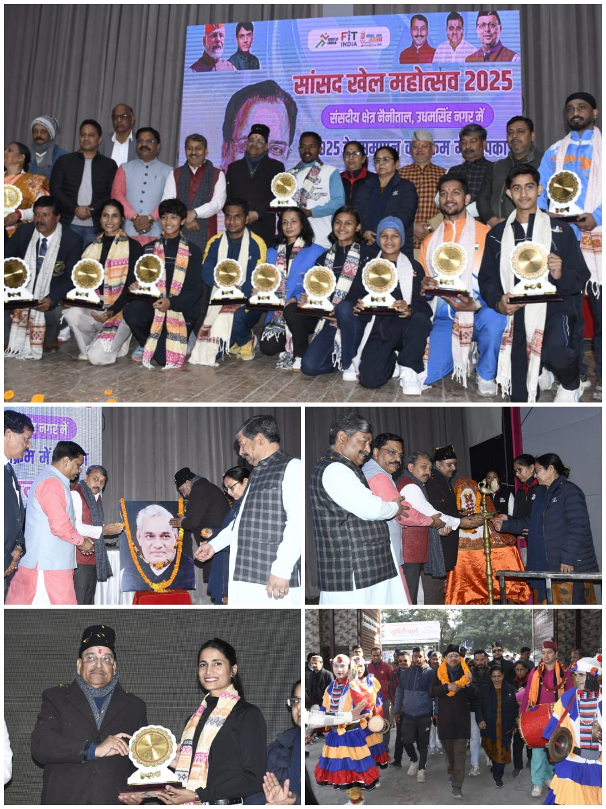 हल्द्वानी। सांसद खेल महोत्सव कार्यक्रम के समापन अवसर पर एमबीपीजी कॉलेज स्थित लाल बहादुर शास्त्री ऑडोटोरियम हॉल में आयोजित कार्यक्रम में प्रधानमंत्री श्री नरेंद्र मोदी के लाइव प्रसारण को सांसद अजय भट्ट सहित अन्य अतिथियों, खिलाड़ियों, जनप्रतिनिधियों तथा राष्ट्रीय और अंतरराष्ट्रीय खिलाड़ियों ने सुना ।