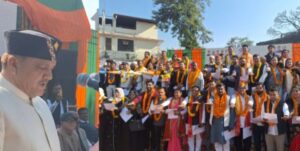 हल्द्वानी। नगर निकाय चुनाव के बाद शुक्रवार को रामलीला ग्राउंड में आयोजित समारोह में नवनिर्वाचित महापौर गजराज सिंह बिष्ट और 60 पार्षदों ने पद एवं गोपनीयता शपथ ग्रहण की। महापौर को कुमाऊं आयुक्त एवं मुख्यमंत्री सचिव दीपक रावत ने शपथ दिलाई, जिसके बाद उन्होंने सभी नव निर्वाचित पार्षदों को शपथ ग्रहण करवाई। कार्यक्रम में प्रदेश की महिला एवं बाल विकास मंत्री और प्रभारी मंत्री रेखा आर्य, भाजपा जिलाअध्यक्ष प्रताप बिष्ट, विधायक कालाढूंगी बंशीधर भगत और विधायक नैनीताल सरिता आर्य समेत कई गणमान्य लोग मौजूद रहे।