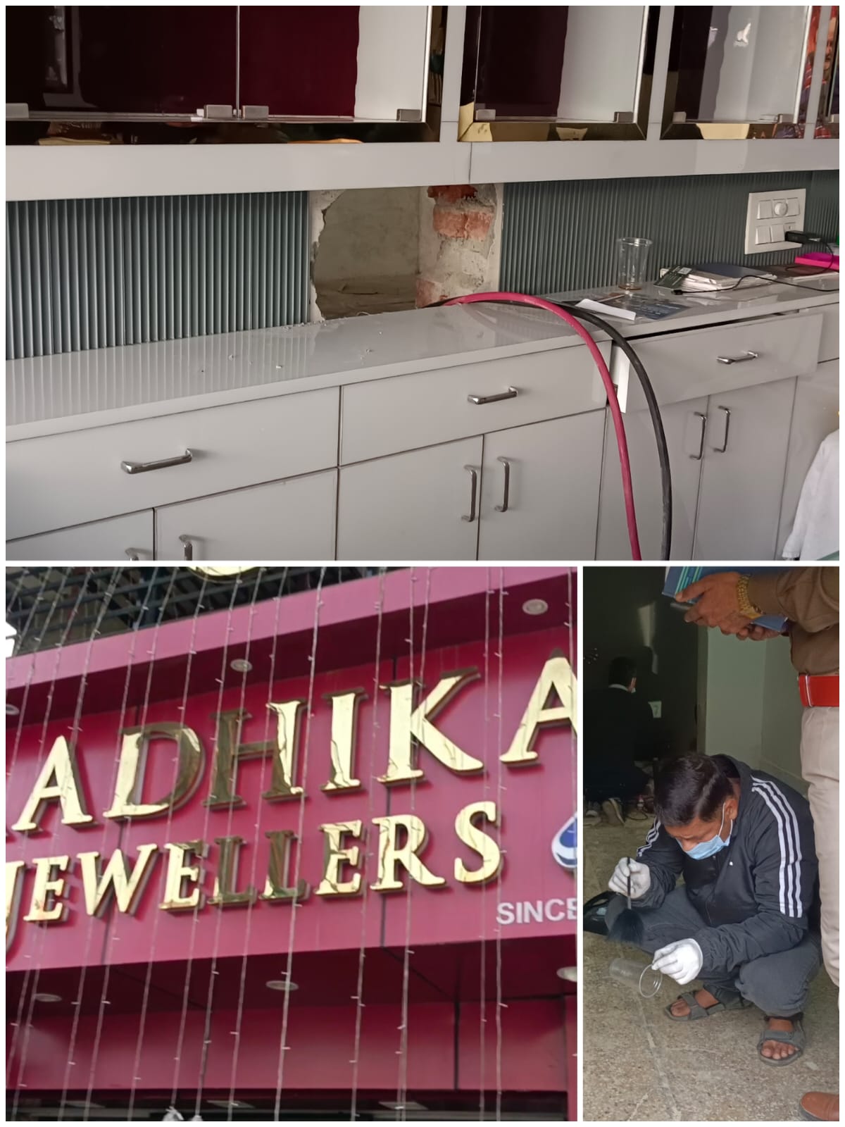 जानकारी के अनुसार शुक्रवार रात दुकान स्वामी रजत शर्मा दुकान बंद कर घर चले गए। शनिवार को अवकाश के चलते दुकान बंद रही। आज रविवार को जब सुबह दुकान खुली तो चोरी का पता चला। चोर दुकान में गैस कटर आदि समान छोड़ लगभग 25 किलो चांदी के साथ सोने के आभूषण व कैश लेकर चंपत हो गए। दुकान के निकट ही रेस्टोरेंट के सीसीटीवी में शुक्रवार की रात चोरी की घटना को अंजाम लेकर चोर दुकान से निकलते दिखाई दे रहे हैं। वारदात को अंजाम देने के दौरान चार से पांच लोग सीसीटीवी में दिखाई दे रहे हैं।