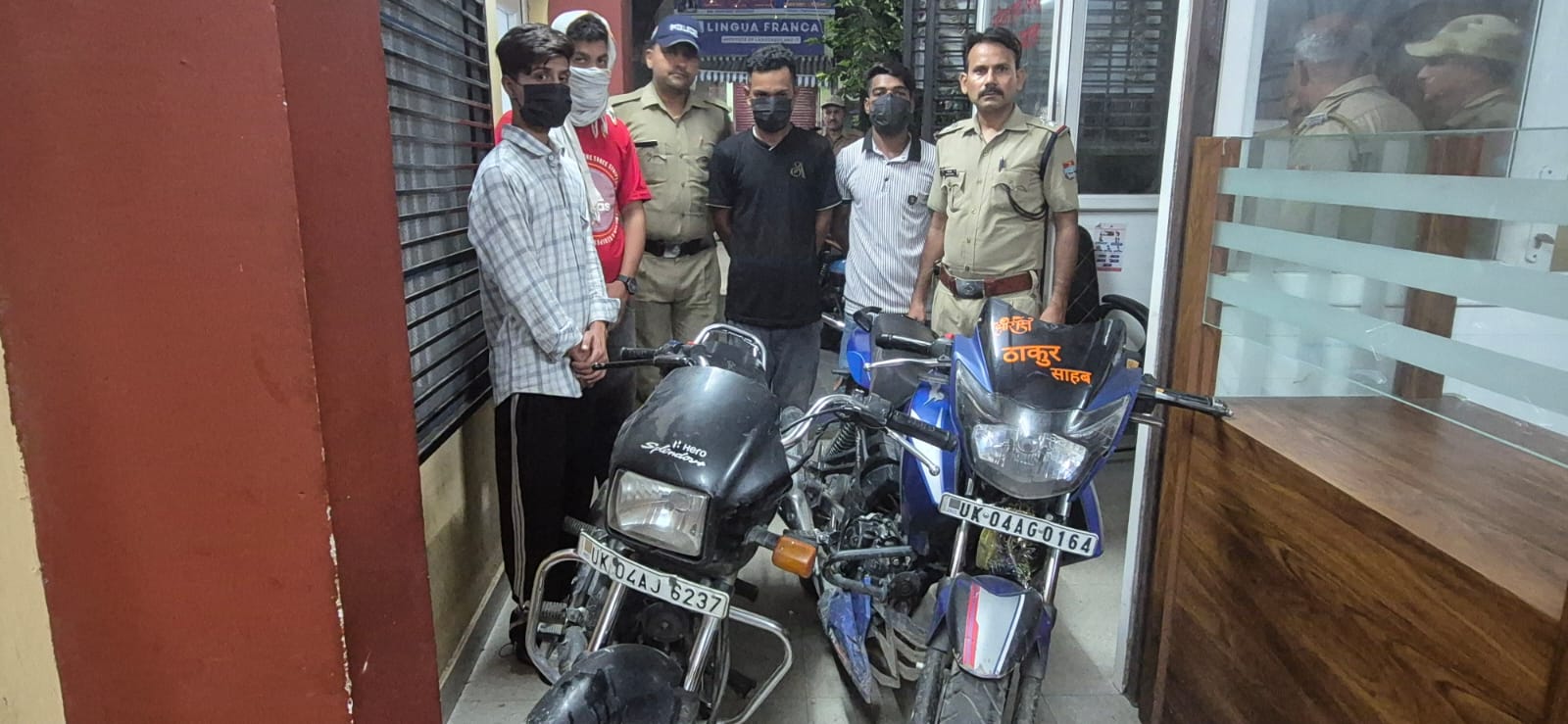 एसएसपी के आदेश पर पुलिस टीम ने तुरंत वीडियो में दिख रहे चार युवकों रोहित बिष्ट, क्षितिज सिंह (नवाबी रोड निवासी), अमित (बिटोरिया निवासी) और दिलशाद (बागजाला, गोलापार निवासी) को पहचान कर हिरासत में ले लिया। वीडियो में मौके दिख रहीं दो मोटरसाइकिलें (UK-04 AG 0164 व UK-04 AJ 6237) को भी जब्त कर सीज किया गया। सभी आरोपियों के विरुद्ध पुलिस अधिनियम के अंतर्गत चालान कर जुर्माना भी वसूला गया।